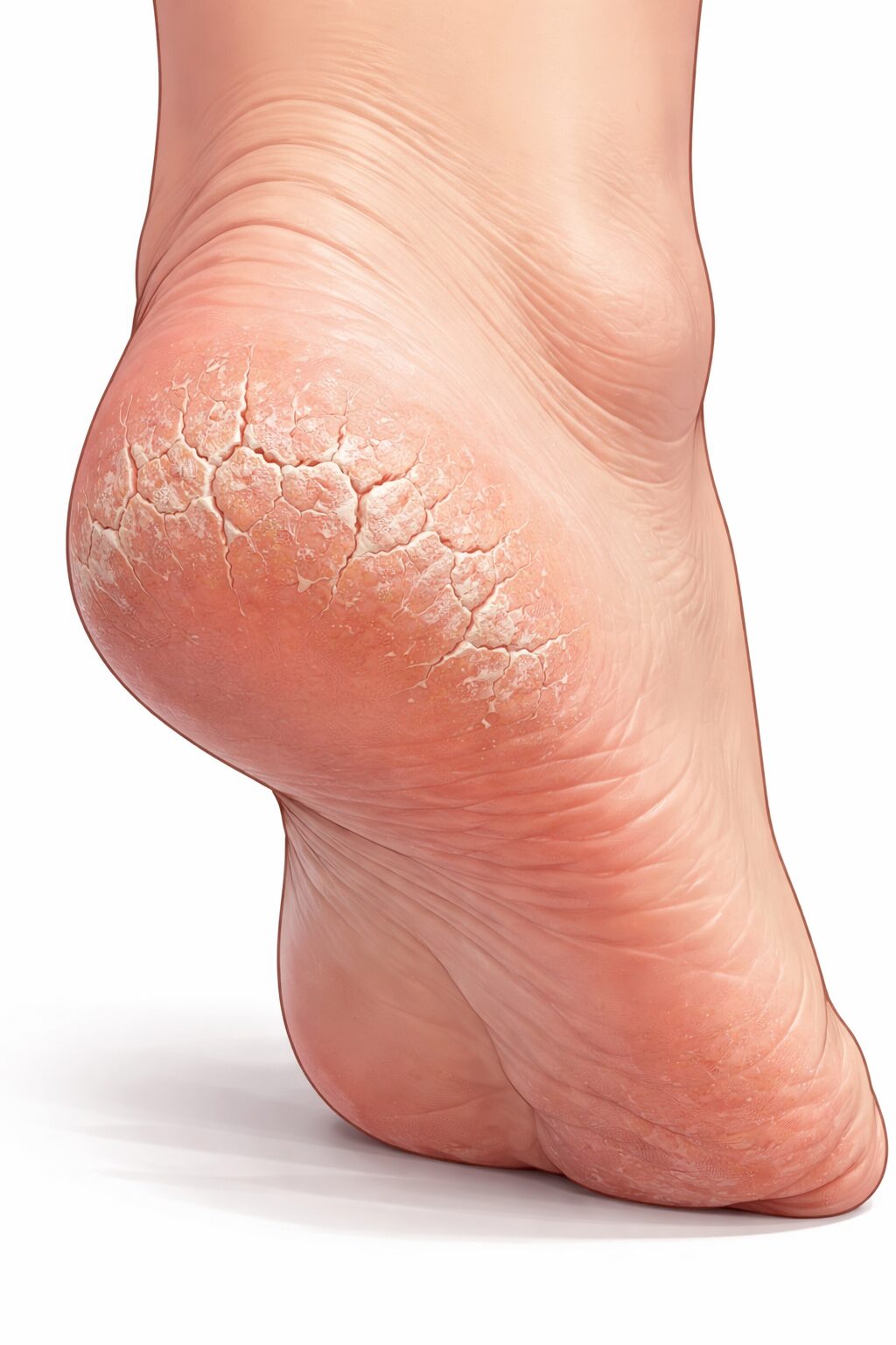 「何をしても、何ヶ月も治らない」「皮がポロポロ剥けてくる」「小さな水ぶくれがある」という場合は、乾燥ではなく踵水虫(足白癬)の可能性があります。